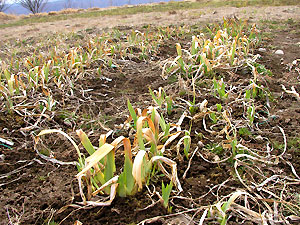 おひたしをするならほうれん草も、と、去年の秋種を蒔いたところを見てみたけどイマイチ。