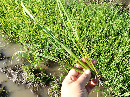 はげしく分けつした苗。リョウコが「ガンダム苗」と命名。今年の流行語になりそう。