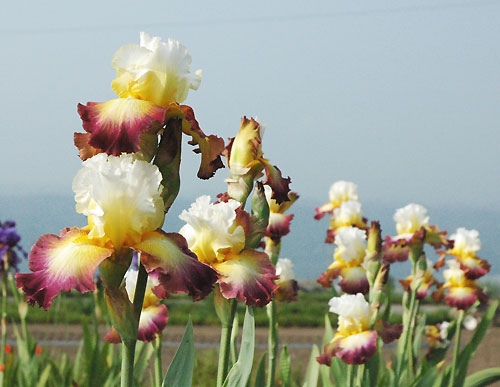 ジャーマンアイリスっていうのはアヤメの一種で、アメリカ、フランス、イギリス、オーストラリアなどで交配されていて、毎年たくさんのナーセリーがさまざまな新花を紹介するので、その種類は数万種にも及ぶ。