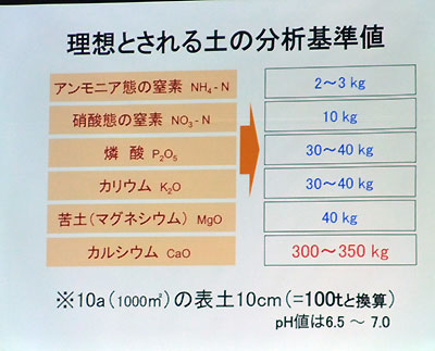 そしてこれは、九州電力で長い間土の分析をしていた米沢博士という人が導き出した、理想の土の分析結果だ。