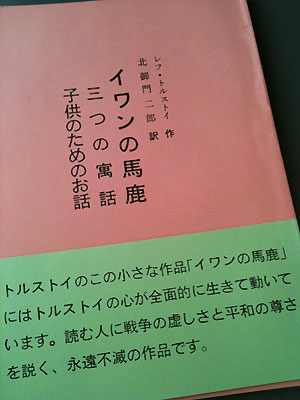 イワンの馬鹿はトルストイの書いた有名な童話だけど、世の人が目にする多くの翻訳はちょっとニュアンスが違うと、これではトルストイがかわいそうだということで、トルストイ研究家の北御門二郎(きたみかど じろう)さんが翻訳された本がこれだ。