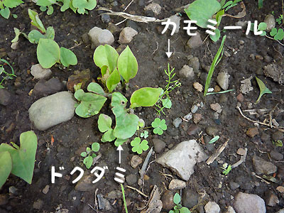 畑いっぱいに咲いてるから、長靴で歩いているだけで種がついてきて、庭にも出てきたのだ。