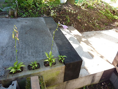 職人くんが作ってくれた階段にも、ギボウシを植えてみた。