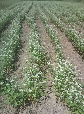 もう遅いかな―と思いつつ8月13日に蒔いた蕎麦たち、花をつけました。
