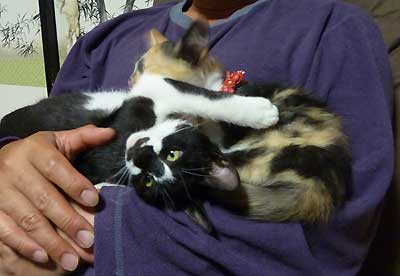 おっきくなって、2匹抱っこが難しくなってきたよ。