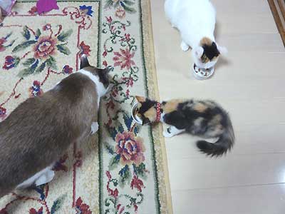 4匹のごはんタイムは、しっちゃかめっちゃか。