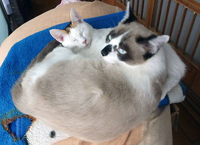 なんて気をもむ毎日が続いて、えみぃも精神的にちょっとまいったのだけど、昨日は久々にくっついて寝てた。