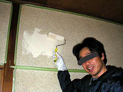 えみぃはコテを使ってなんとか仕上げたけど、オットはローラーをあきらめて指で塗っていた。