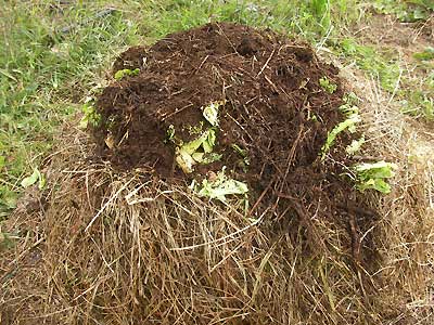 オットに手伝ってもらい、やっとこ山をくずした。近くにある草を足してまぜまぜ。