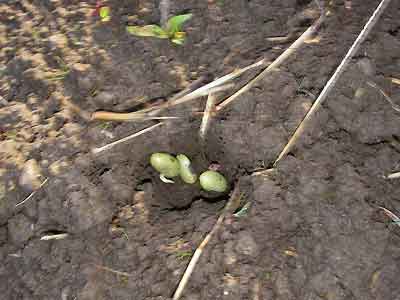 豆の種は、3粒ずつまくんだってー。