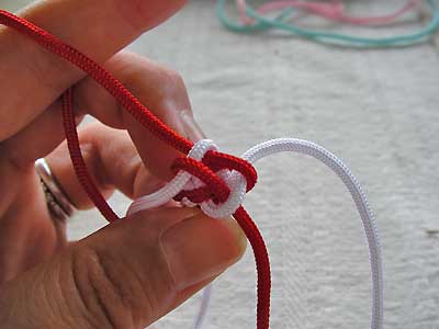 土曜日、いつも元気にお花を売っているヒゲのおじちゃんが妙に静かなんで、様子を見に行ったら、2本の紐を「丸組み」で編んで、お人形を作っていた!