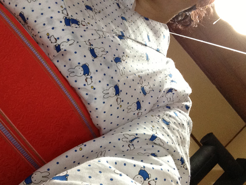 この浴衣、ネットで1900円でゲットしたMiffy柄のかわいいやつなんだー。