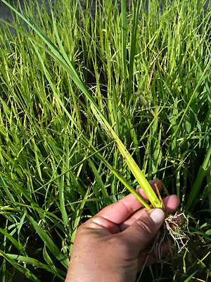 形は稲にすごくよく似ているけれど、茎が少し柔らかくて根っこが太い。