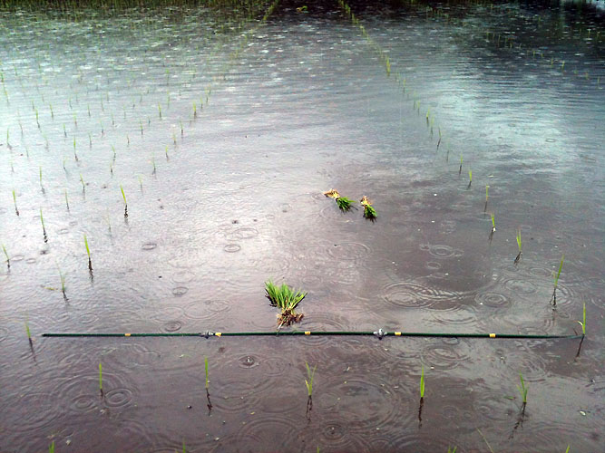 待ち望んだ雨だったから、「やまないで~」と歌を歌いながら、ゲコゲコーっていう蛙たちの大合唱を聞きながら、もくもくと日がとっぷり暮れるまで苗取り。