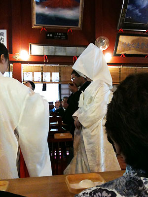 社殿内で厳かに結婚式が行われたんだけど、杉林から涼やかな風が流れてきて心地よくて、神主さんの声が子守唄のようで思わずうとうとしてしまった。