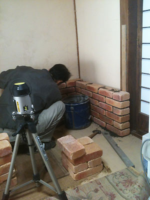 2日目は左官屋さんが煉瓦積みの仕上げをして終了。