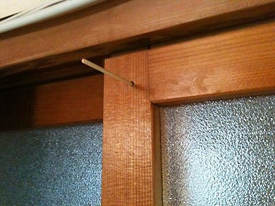 そしたら職人くんが「戸に穴あけて、棒を挿しときゃぁいいでぇ」って言うもんで、やってもらった。