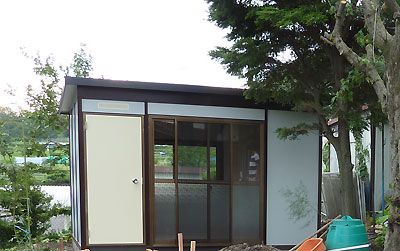 光ハウジングっていう会社のプレハブなんだけど、朝早く職人さんが大きなトラックに資材と工具を積んできて、夕方には出来上がってしまったのだ。