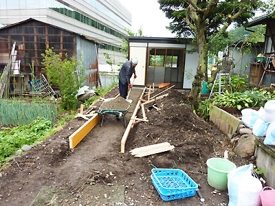 だので、小屋から車までのアプローチを日曜大工することに。