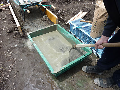 ある程度下地ができたところで、コンクリを練り始める。