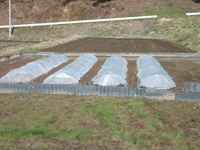 ある年、苗代作りがすごく遅れちゃって、気候が暖かかったからトンネルなしで作った。