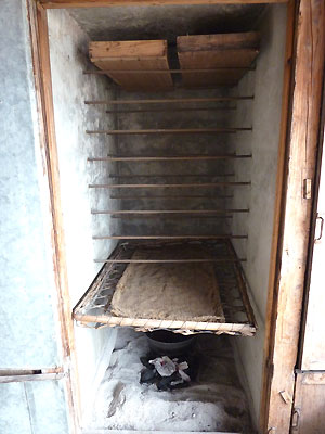 おばちゃんが朝8時半におきた炭を入れてあたためておいてくれたので、10時に箱を入れた時点で約20度。
