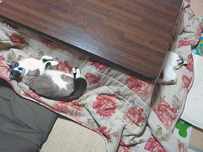 さーて、こたつに座って一服しようかしらと思うと。。。