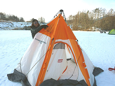 テントを作り支度をし、竿をたらす。