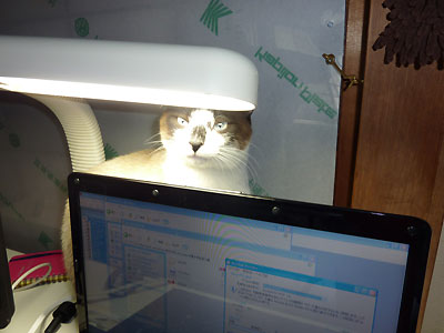 PCの後ろに入って、デスクライトを浴びる音。