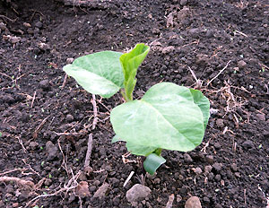 本葉が開き始めたら定植時期。雨降りを待ってささっと移植。