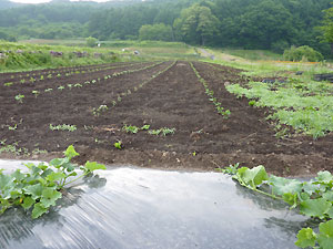定植が終わった大豆や小豆への声かけも忘れずに。