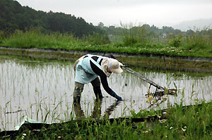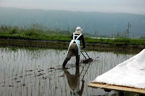草とりだけでも大変なのに、先週末、リョウコが苗代の田んぼの田植えをしたいと言いだした。