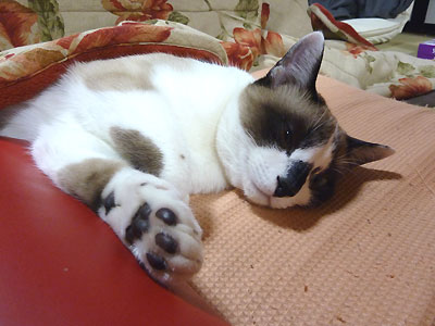 ペロりとたいらげ、タワーに上って昼寝を始めた。