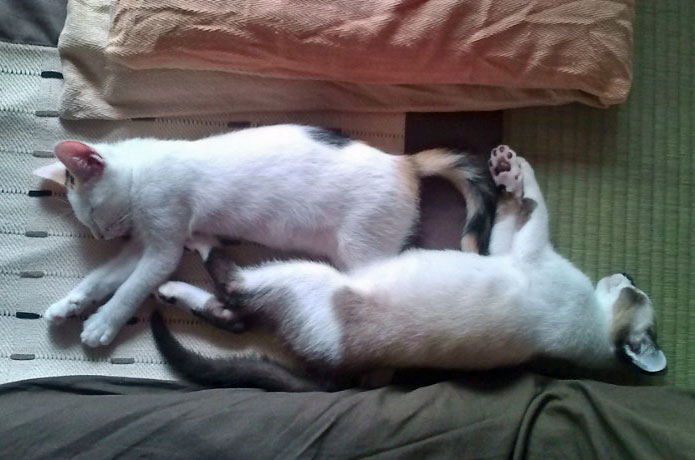 こんな姿を見ちゃうとかわいくてしょうがなくて、いろんないたずらを大目に見ちゃう今日この頃。みなさん家の猫、ごはんは生派?ドライ派??