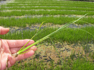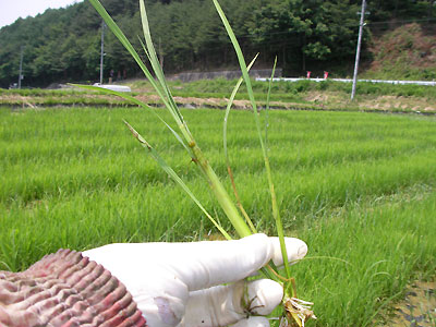今年はヒエがたくさん生えてしまった。激しく大きく分けつ(根本から分かれている)ものはたいていヒエなんだけど、苗と区別がつきにくい。