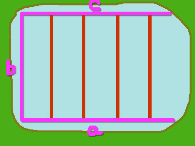 なので、交差したところが90度になるよう縦横にライン(下図のa,b,c)をひっぱって、1m80cm感覚に基準線(下図の赤いライン・30センチ間隔)を植える。