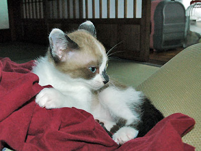 色はシャム猫みたいだし、ブルーの目なんだけど、骨格ががっしりしてる&おでこが丸いあたりは欧米系の雰囲気。