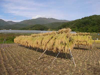おととし、手で刈ったときは縛るのが大変だっけ。。。機械ってすごいなー、ありがたいなー。