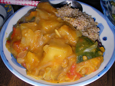 このリッチカレー、油と水と塩とスパイス以外は全部地物。