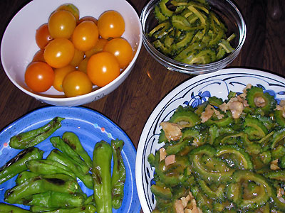 夏中、ナスやトマトやピーマンをたーーーんといただいて、幸せな晩餐が続いてたけど、今年はゴーヤがうまくいかなくてちょっとさみしかった。