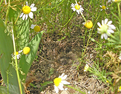 保護色だからわかりずらいけど、中央にフワフワの産毛に覆われた雛が4羽いるの。