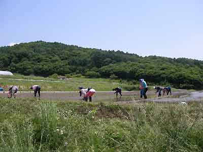 午後、えみぃを含めたなずなの会の面々は唐澤会長の田んぼに移動して田植え。
