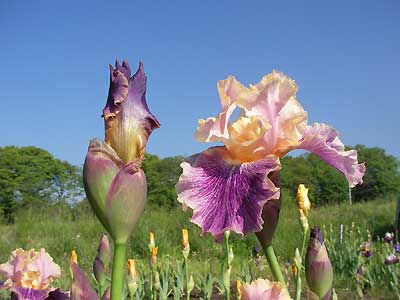 過酷な田んぼの作業の前に、リョウコと畑でアイリスを鑑賞。これキレイねー、あれもいいねーなんて、最初はじっくりアイリスを見てるんだけど、そのうちに株元の草が気になり出すリョウコさん。