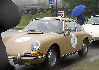 このラリーはスピードを競うものではなく、いかに決められたペースで走るかを競うものらしく、エントリーした車はゼッケン番号順に並んで走ってくる。