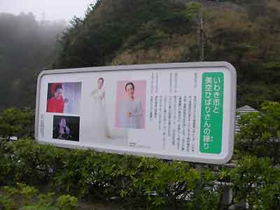 塩屋岬の灯台を見上げる広場に、「いわき市と美空ひばりさんの縁り」と書かれた大きななパネルと、ひばりちゃんの歌碑がたっていた。とてもキレイに手入れがされていたし、ひばりちゃんのファンと思われる観光客もちらほら。