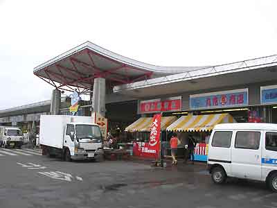 市場の前のベストポジションに車を停めて、市場へGO!
