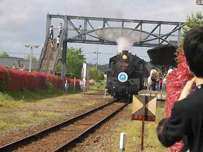 行ってみると、もうすぐSLが来るとのことっ!なにー、それは見なくちゃ。
