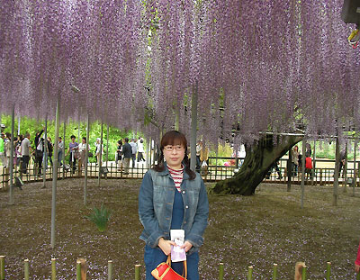 1本の藤の枝が900㎡も広がって、天上みたいになってる!シャンデリアみたいな藤の花が一面に下がってて、すごくキレイ。そして、すごく良い香りがしている。