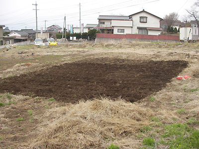 2時間ぐらいでやっとこ半分。腕と腰がパンパンになっちゃったんで、どけたところだけ耕運機で耕すことにした。