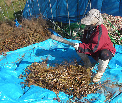 人は、角材や石に株をたたきつけるらしいけど、リョウコはこうやってた。